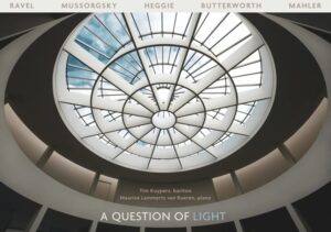 In het liedprogramma “a question of light” van bariton Tim Kuypers met pianist Maurice Lammerts van Bueren staat “licht” centraal. Liederen van Mussorgsky, Ravel, Butterworth, Heggie en Mahler belichten grote thema’s als kunst, dood en liefde, waanzin, kleuren en lichtsterktes. Want wat is licht, welke rol speelt het in ons leven, is er altijd licht aan het eind van de tunnel, wat gebeurt er met kleur als onze perceptie van de werkelijkheid verandert?